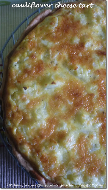 I have been wanting to make Cauliflower Cheese Tart ever since I saw the recipe in a magazine. Many times I have bought some cauliflower for this purpose and each time it ended up stir-fried in my wok. But not this time!